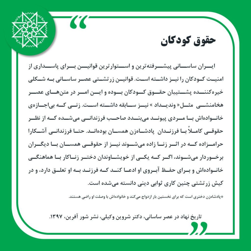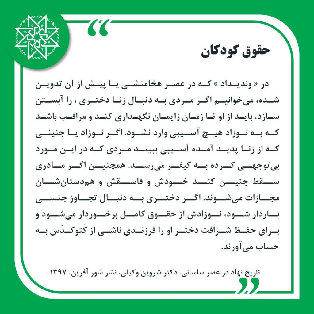 گزیده هایی از کتاب «تاریخ نهاد در عصر ساسانی» ، دکتر شروین وکیلی، نشر شورآفرین، 1397