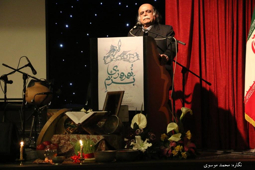 جشن با نقالی و شاهنامهخوانی آقایان مسعود خسروی و پویان مقدم آغاز شد و داستان اکوان دیو و رستم و غلبهی پهلوان بر هیولای سرما روایت شد. پس از آن مهندس پیمان اعتماد مدیر عامل موسسهی خورشید به حاضران خوشامد گفت و گزارشی از دستاوردهای خورشید و موقعیت سازمانهای همکار به دست داد و پس از آن نماهنگی از فعالیتهای خورشید ارائه شد. آنگاه نوبت به دکتر میرجلالالدین کزازی رسید که سخنرانی زیبایشان را در معنی نوروز و ارتباط آن با آیینهای نوزایی هستی و جدایی روشنایی و تیرگی ارائه کردند. به دنبال آن دکتر افشین یداللهی چند غزل از کتاب تازهشان را برای حاضران خواندند و حاضران پس از شنیدن یک موسیقی محلی جنوبی که با نی اَنبان و سازهای کوبهای اجرا شد، برای استراحتی کوتاه از تالار خارج شدند.