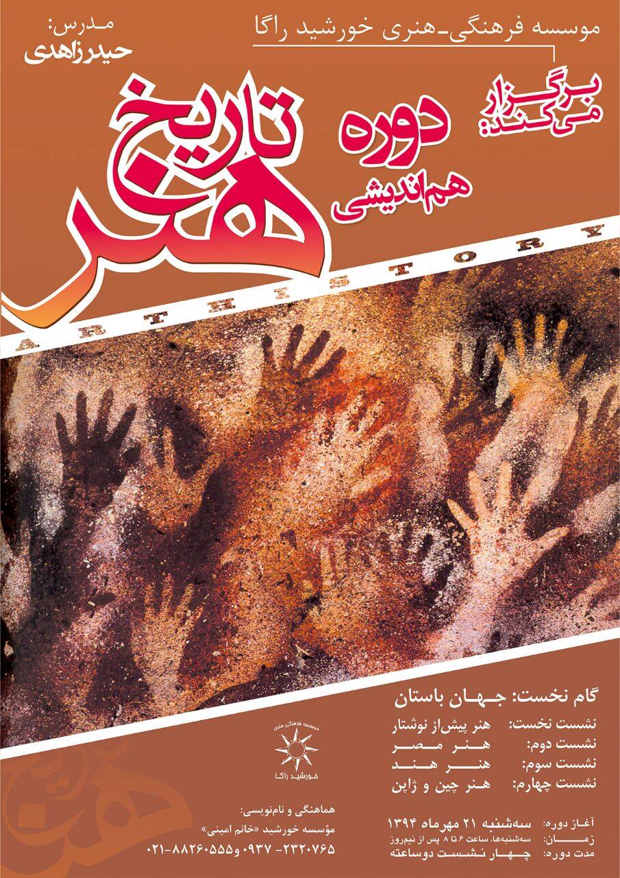 گام نخست از سلسله نشست‌های هم اندیشی تاریخ هنر با هدف بررسی و پژوهش تاریخ هنر در جهان باستان در موسسه‌ی فرهنگی-هنری خورشید برگزار می‌شود. مدرس این دوره ها آقای حیدر زاهدی این دوره را با هدف بررسی سبک، شمایل‌پردازی، موقعیت تاریخی و چرایی در آفرینش آثار هنری، طرح ریزی شده و همچنین سعی دارد از منظری تحلیلی-فلسفی به موضوع تاریخ هنر بنگرد.