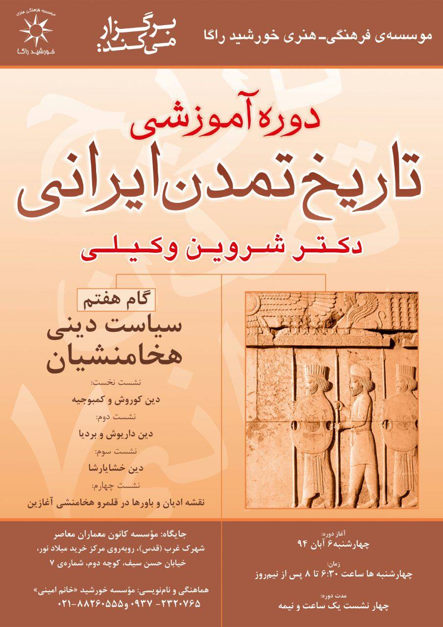 بررسی تاریخ تمدن ایرانی، درونمایه‌ی دوره‌ی تازه‌ی آموزشی-پژوهشی در موسسه‌ی فرهنگی-هنری خورشید است و با استادی دکتر شروین وکیلی برگزار می‌شود.