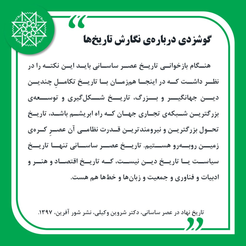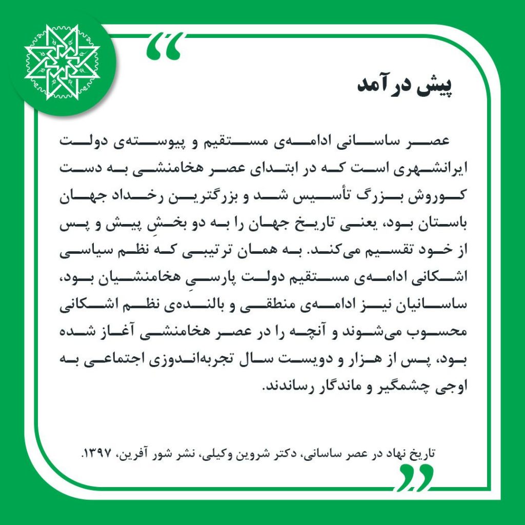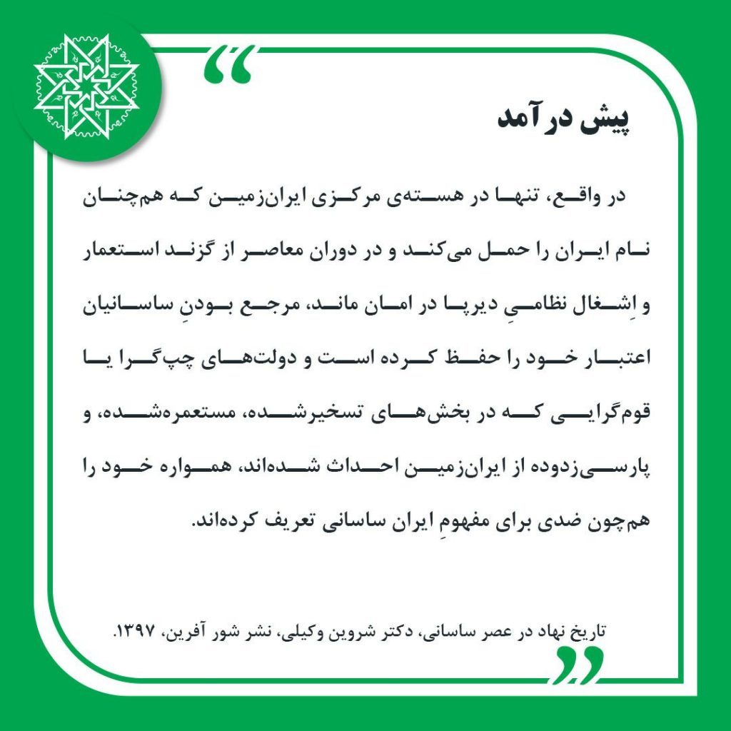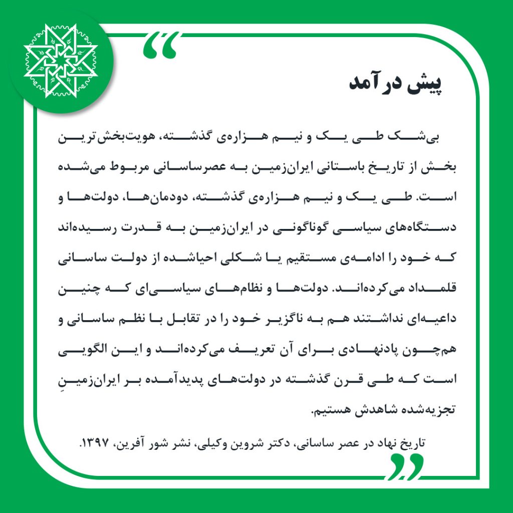 گزیده هایی از کتاب «تاریخ نهاد در عصر ساسانی»، دکتر شروین وکیلی، نشر شورآفرین،1397